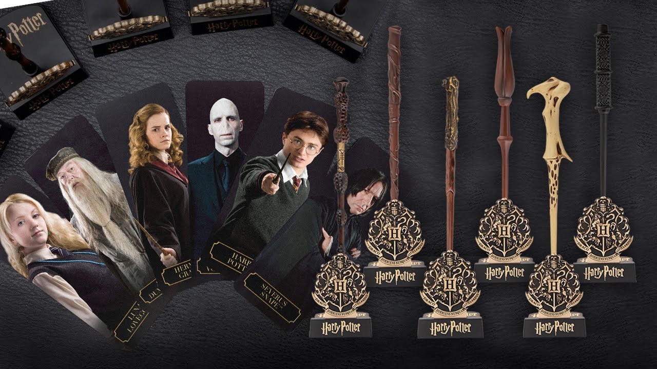 Stylo à la forme de la baguette de Lord Voldemort et support présentoir écusson de Poudlard issu de l'univers de Harry Potter